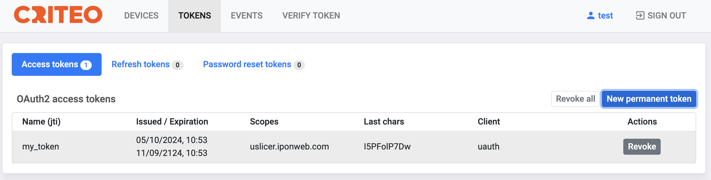 token_type: the type of the generated access token. Possible values: Bearerscope: the service for which the generated access token can be used. Possible values: service_id=uslicer.iponweb.com, service_id=upredict.iponweb.comaccess_token: generated access tokenexpires_in: access token validity period. Possible values: 3600 seconds