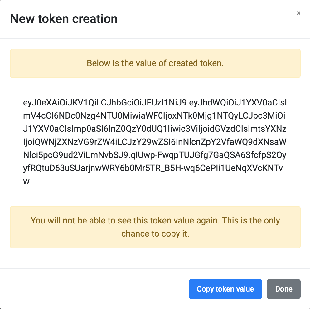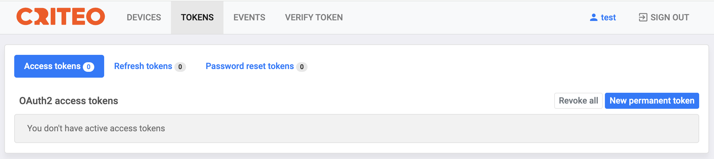 Click the New permanent token button in the appeared dialog box with the list of available tokens. This list is empty, if you are creating your first token.