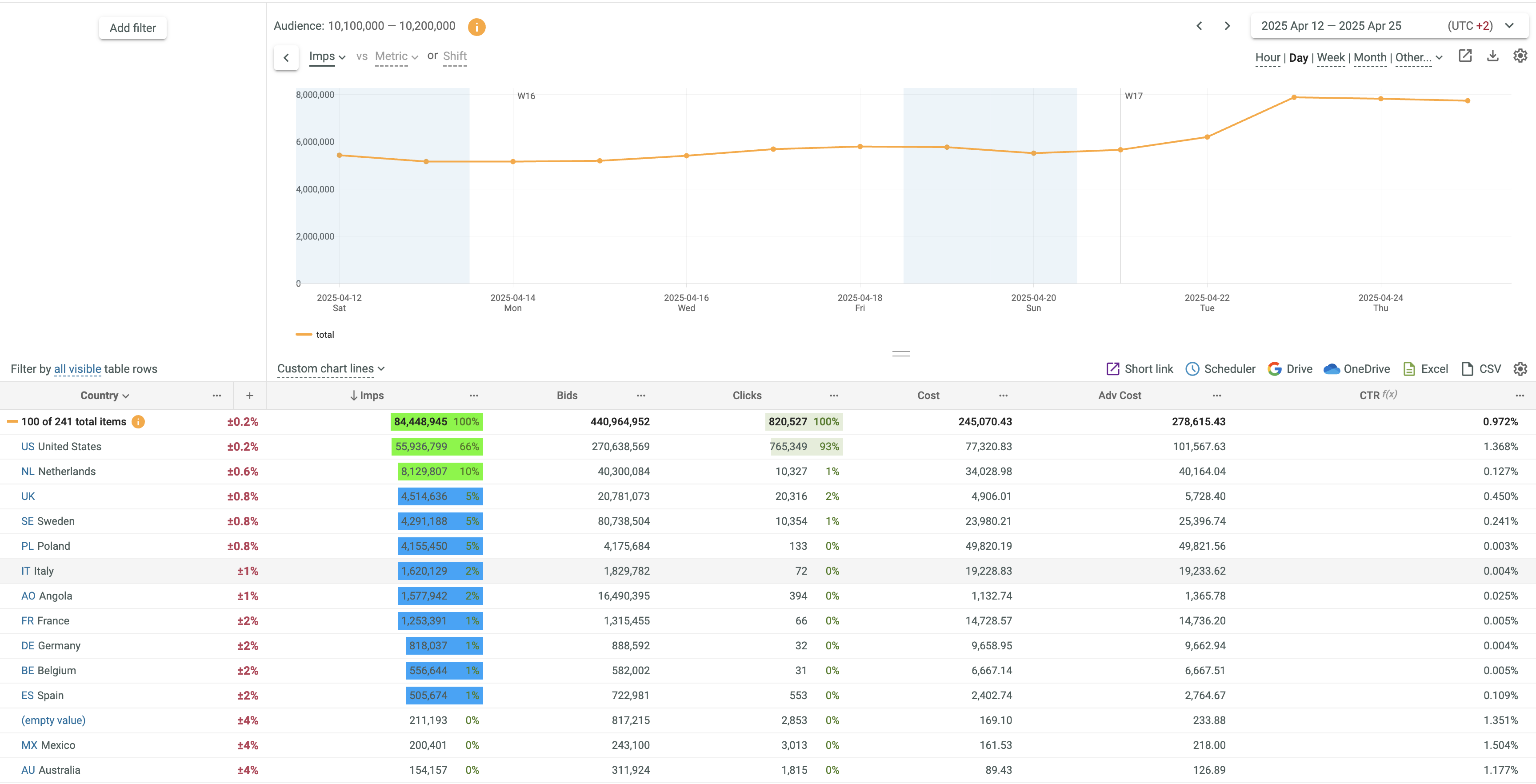 Conditional formatting is very useful for highlighting value/**percent**intervals in data columns with different colors. This feature is available only for users with extended access permissions.