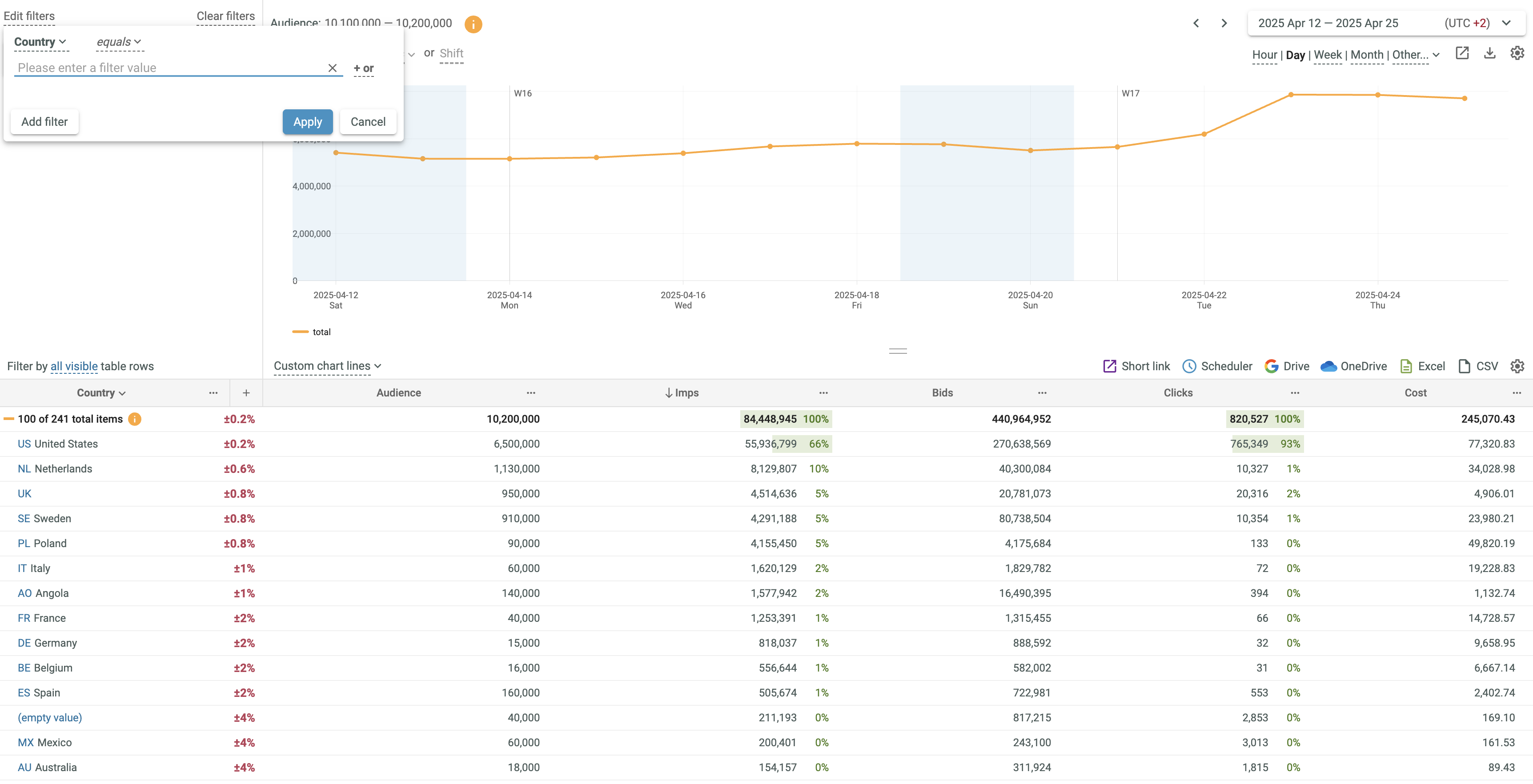 - See that the advanced filter is applied to the NL, DE and SE key field values.